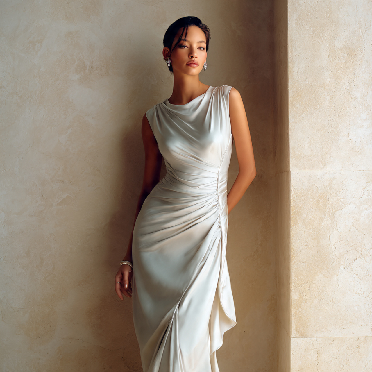 • Choose elegant fabrics like crepe or satin