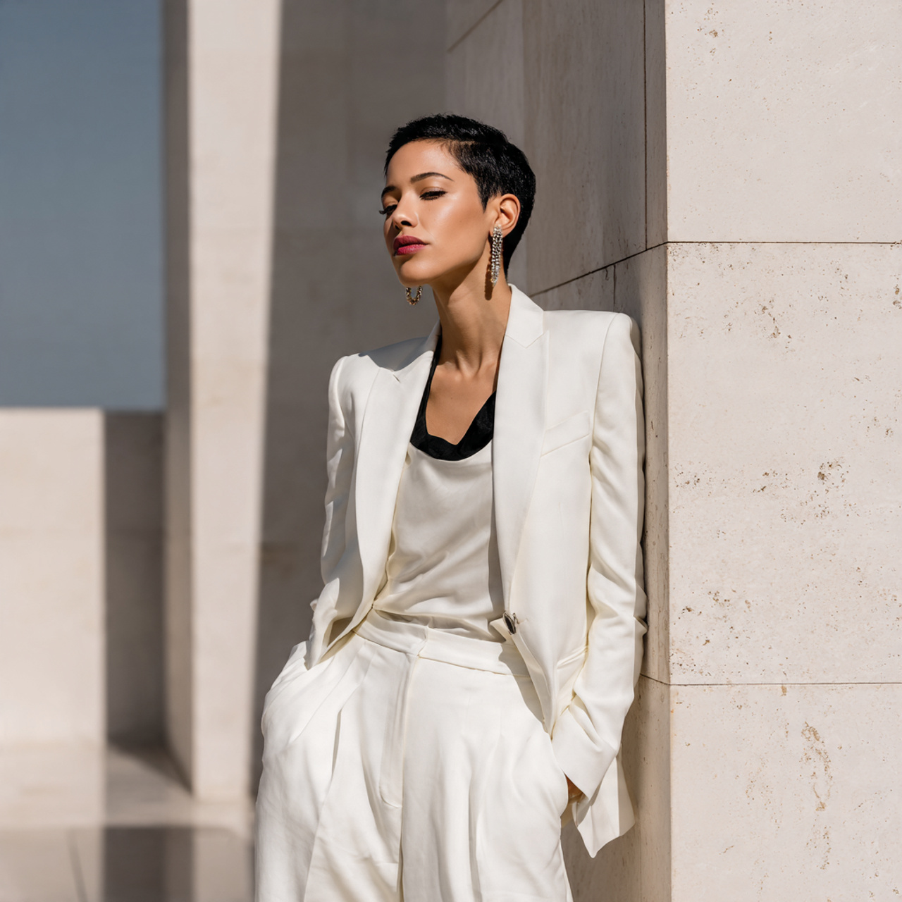 Tailoring is everything here. The blazer should fit perfectly at the shoulders and waist. Trousers should skim the floor or stop just above the ankle, depending on the style.