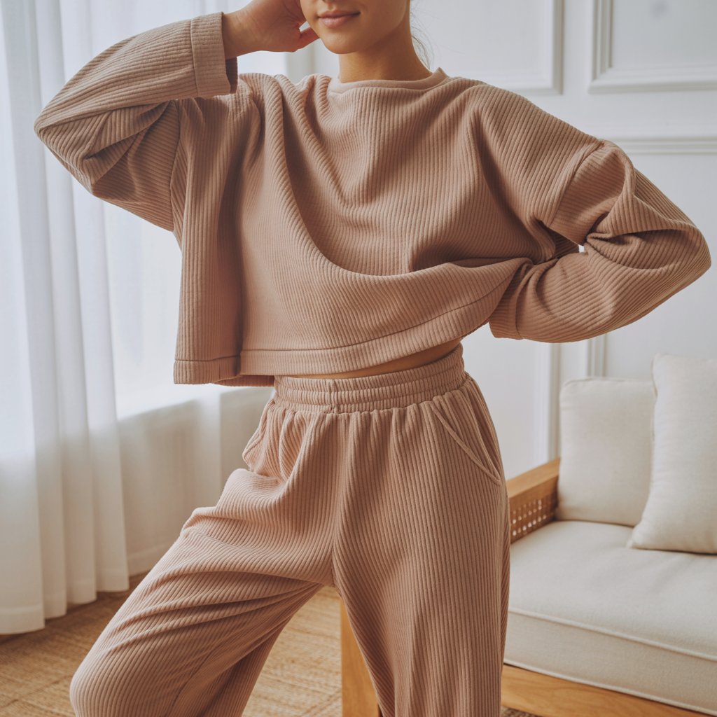 Casual matching sets made from cotton, ribbed fabric, or soft knits are ideal for everyday wear. They are comfortable enough for home but polished enough for quick outings. This makes them a great investment for a casual wardrobe.